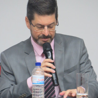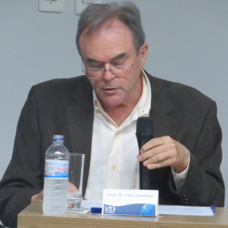 Em seguida, o Prof. Dr. Célio Haddad, coordenador científico do CBioClima, contou aos presentes como foi o processo de idealização e execução do Cepid. Segundo Haddad, "em 2009, 17 pesquisadores tinham o desejo de criar um primeiro observatório de pesquisa sobre biodiversidade tropical e mudanças climáticas". "Foram muitos anos de trabalho até o surgimento do CBioClima, que hoje tem como missão promover a inovação focada em soluções sustentáveis e baseadas na ciência, e acelerando a disseminação do conhecimento para mitigar a perda de biodiversidade em um cenário de mudanças climáticas", completou. Por fim, o pesquisador agradeceu à Finep, a FAPESP, aos colegas do departamento, à reitoria, aos reitores anteriores e a atual por terem apoiado o projeto desde a sua idealização.