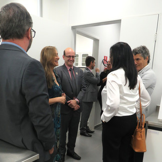 Após uma visita ao prédio do CRB, pesquisadores e autoridades se reuniram no Anfiteatro II do Instituto de Biociências para a sessão solene de inauguração. Entre os presentes estavam: Miguel Brito de Andrade, Analista do Departamento de Infraestrutura de Pesquisa (DIEP) da FINEP (Financiadora de Estudos e Projetos), que em sua fala destacou a importância de fazer pesquisa e o quanto a FINEP apoia esse processo. “Nós acreditamos na ciência, apoiamos a ciência, e vocês pesquisadores são a essência de uma universidade. Saibam que vocês estão sendo vistos por nós. Continuem estudando, fazendo as análises, e contem com a gente”, explicou. Miguel concluiu dizendo que "a FINEP tem diversos programas de apoio à pesquisa", assim como o CEPID.