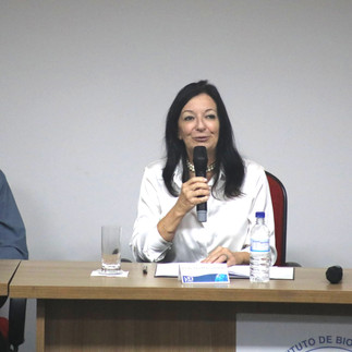 A diretora do CBioClima, Profa. Dra. Patrícia Morellato, reforçou a importância do compromisso coletivo com o crescimento da Universidade. Ela destacou o papel fundamental da pós-graduação na produção de conhecimento e agradeceu a presença de todos. Ressaltou ainda a relevância do financiamento para a consolidação das pesquisas, compartilhando sua trajetória desde jovem pesquisadora até assumir a direção do Cepid. A professora também agradeceu aos pesquisadores principais, que estiveram à frente das demandas relacionadas ao CRB, bem como à Reitoria da Unesp pelo apoio ao Cepid e à construção do prédio. Por fim, expressou seu reconhecimento aos pesquisadores e estudantes associados, ressaltando a importância do trabalho conjunto para o fortalecimento do Centro.