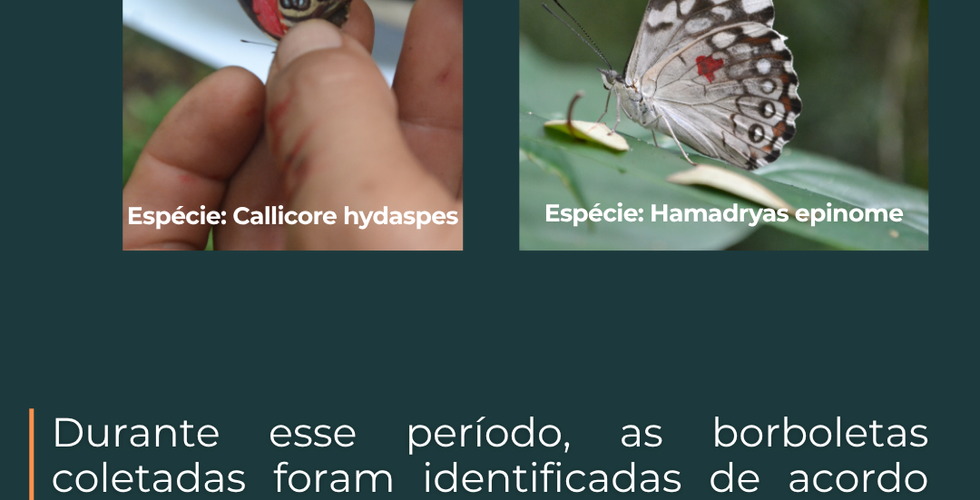 No primeiro dia de atividades, foram instaladas armadilhas com iscas atrativas distribuídas ao longo de trilhas previamente definidas no Parque Nacional. A coleta das borboletas ocorreu diariamente por sete dias consecutivos. As espécies capturadas eram identificadas conforme sua tribo taxonômica, fotografadas (registrando as faces dorsal e ventral das asas), marcadas e liberadas — etapa importante para estimar o tamanho populacional nos diferentes pontos de amostragem.